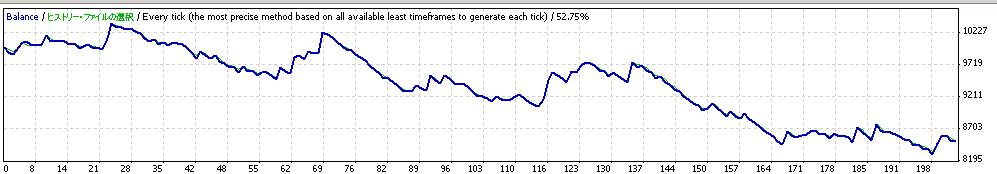とうとう、実際に売買を行うEAを作成しました。 売買ルールの元ネタは某巨大掲示板に乗っていたこんなルールです。 ---------------------------------------------------------------------------------------- んじゃ晒すよ。 前スレから起点から逆指値で注文してリミット10ストップ40ってやり方について調べてたじゃん。 あのやりかたの変型版なんだけど。やり方としては、まず ペアはポン円。起点とする時間は日本時間の14時。14時に逆指値で上下20ピピにLSの注文を入れる。 それで、肝心なのがリミットとストップは入れないこと。っていうかトレールを使う。つまり、利はなるべく伸ばそうってこと。 1時間足のデータ見てると動くときはものすごい勢いで動いてるのがわかったからそういうときに10ピピだともったいないしね。 トレールは最初は25でじょじょにあげていく。 起点が210円だとしたら210.2にLの注文を入れて、トレールは25ピピ。210.55を超えたらトレール30ピピ。 210.70を超えたらトレール35ピピ、210.75以上はトレール40ピピ。 高値からトレール分下がったらストップになる。つまり、負けの場合20でエントリーされて1ピピも上がらずに25下がった場合でスプ入れて-30ピピ。 30まで上がって05まで下がった場合スプ入れて-20ピピの負けになる。 このトレールの数字とか時間、ペアには特に理由があって設定したわけじゃないけど、とりあえずこれで2008年の1月~6月まで1時間足で見てみた。 1月。22日でL19回、S22回エントリー。同値撤退以上の回数がL9回で合計154ピピ。Sが13回で480ピピ。1月トータルで634ピピ 2月。21日でL18回、S18回エントリー。同値撤退以上の回数がL5回で合計-68ピピ。Sが11回で444ピピ。2月トータルで376ピピ 3月。21日でL19回、S18回エントリー。同値撤退以上の回数がL9回で合計32ピピ。Sが5回で-119ピピ。3月トータルで-87ピピ 4月。22日でL19回、S19回エントリー。同値撤退以上の回数がL6回で合計23ピピ。Sが11回で316ピピ。4月トータルで339ピピ 5月。22日でL19回、S18回エントリー。同値撤退以上の回数がL10回で合計274ピピ。Sが8回で-1ピピ。5月トータルで273ピピ 6月。21日でL15回、S17回エントリー。同値撤退以上の回数がL2回で合計-142ピピ。Sが10回で606ピピ。6月トータルで466ピピ 半年合計でLが109回エントリー中41回プラス。合計273ピピ Sが112回エントリー中58回プラス。合計1728ピピ こんな感じの結果です。1月平均300ピピほどでした。 1時間足での検証なので、見えない部分もあり、本当はストップに刈られていたりもあるかもしれないですが。 トレール幅などは適当に決めたので変えれば結果はもっと良くなるかもしれないし、悪くなるかもしれません。 そして、トレールの幅をじょじょに上げていくため、エントリー中はチャートをずっと見て自分で変えていかないといけません。めんどいですが ご意見、質問などあればどんどんどうぞ。 おそらくこれだと思う。俺もこれで今勝ててる ---------------------------------------------------------------------------------------- つまりポン円で日本時間の14時の価格から+-20Pipずつにストップで売買注文を出す というルールですね (トレーリングストップも機能として必要だけど、それは後回しということで・・・) このルールを元にEAを作成しました ソースはこれ→ダウンロード(mq4) これをつかって、ポン円の15分足をつかって2007年1月1日から2008年12月31日までの バックテストをしてみましたよ。 結果はこれ↓ ん~。 見事な右肩下がり(´Д`;)ヾ 次からは、このEAを元にして、トレーリングストップとか色々な機能を付加していきたいと思います(*'-') |