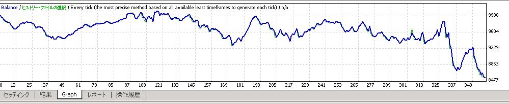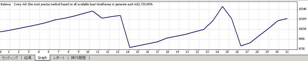 レンジ相場用の逆バリ手法で何か良いの無いかな?と思っていたら、 Pivotっていうのを見つけましたよ(・∀・) なんでも、前日までの価格を元に当日の価格幅を計算して逆バリするみたいです 実際の算出式はぐぐって見てください(・∀・)b 他のルールとしては ・前日の値幅が、過去7日間の値幅より小さい場合はエントリーしない ・原則、月曜日はエントリーしない というのがある模様です そんなこんなで作成したEAがこちら→ダウンロード(mq4) 単純だからEAの解説は無しw そしてドル円でバックテストをした結果は・・・ あっれぇ!?∑( ̄□ ̄;)
